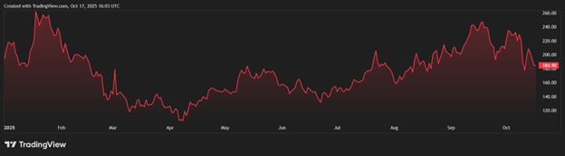 Solana, trading between $162 and $165, has a market cap in the $90–110 billion range. Known for its fast transactions and growing ecosystem, Solana was one of the breakout stars of the last bull cycle, delivering extraordinary early-stage returns. Yet today, SOL faces significant resistance in the $200–$210 zone, with analysts noting that breaking through these levels requires massive capital inflows that are increasingly challenging for such a large asset.