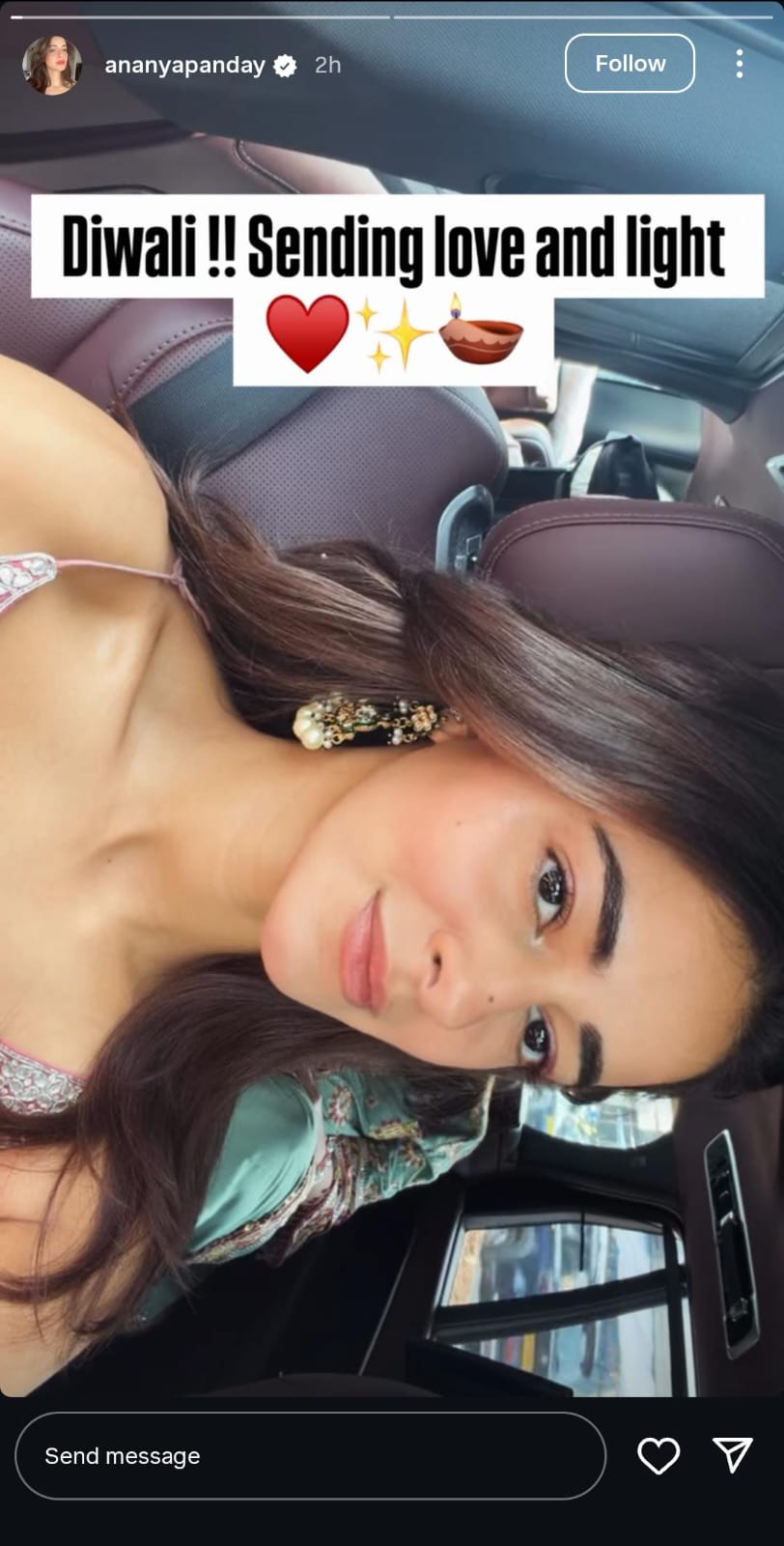 अनन्या पांडे भी हर साल की तरह इस साल भी सज धजकर दिवाली मनाने के लिए तैयार हैं. उन्होंने अपने इंस्टाग्राम स्टोरीज सेक्शन में अपनी एक तस्वीर शेयर की हैं. इसमें उनका सॉफ्ट मेकअप फैंस का दिल जीत रहा है. तस्वीर शेयर करते हुए उन्होंने फैंस को दिवाली की शुभकामनाएं दी हैं.
